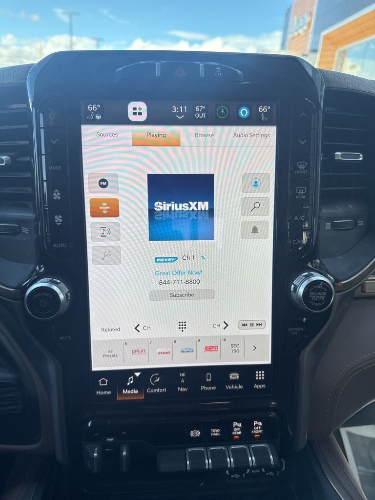 Step inside the luxurious cabin and be enveloped in the premium Longhorn experience. Indulge in the comfort of heated and ventilated front seats, the convenience of a 12-inch touchscreen display with the latest Uconnect 5 technology, and the exceptional sound quality of the 17-speaker harman kardon premium audio system. Every detail has been meticulously crafted to ensure your driving pleasure.