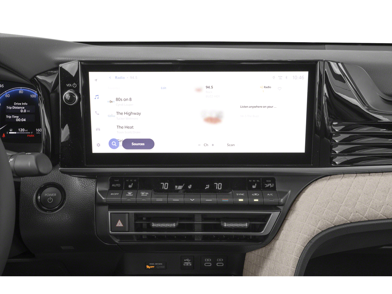- Radio: Toyota Audio Multimedia w/12.3" Touchscreen -inc: USB-A media port, hands-free phone capability and music streaming via Bluetooth® wireless technology, SiriusXM 3-month trial subscription, 6-speaker audio system, wireless Apple CarPlay compatibility and wireless Android Auto compatibility